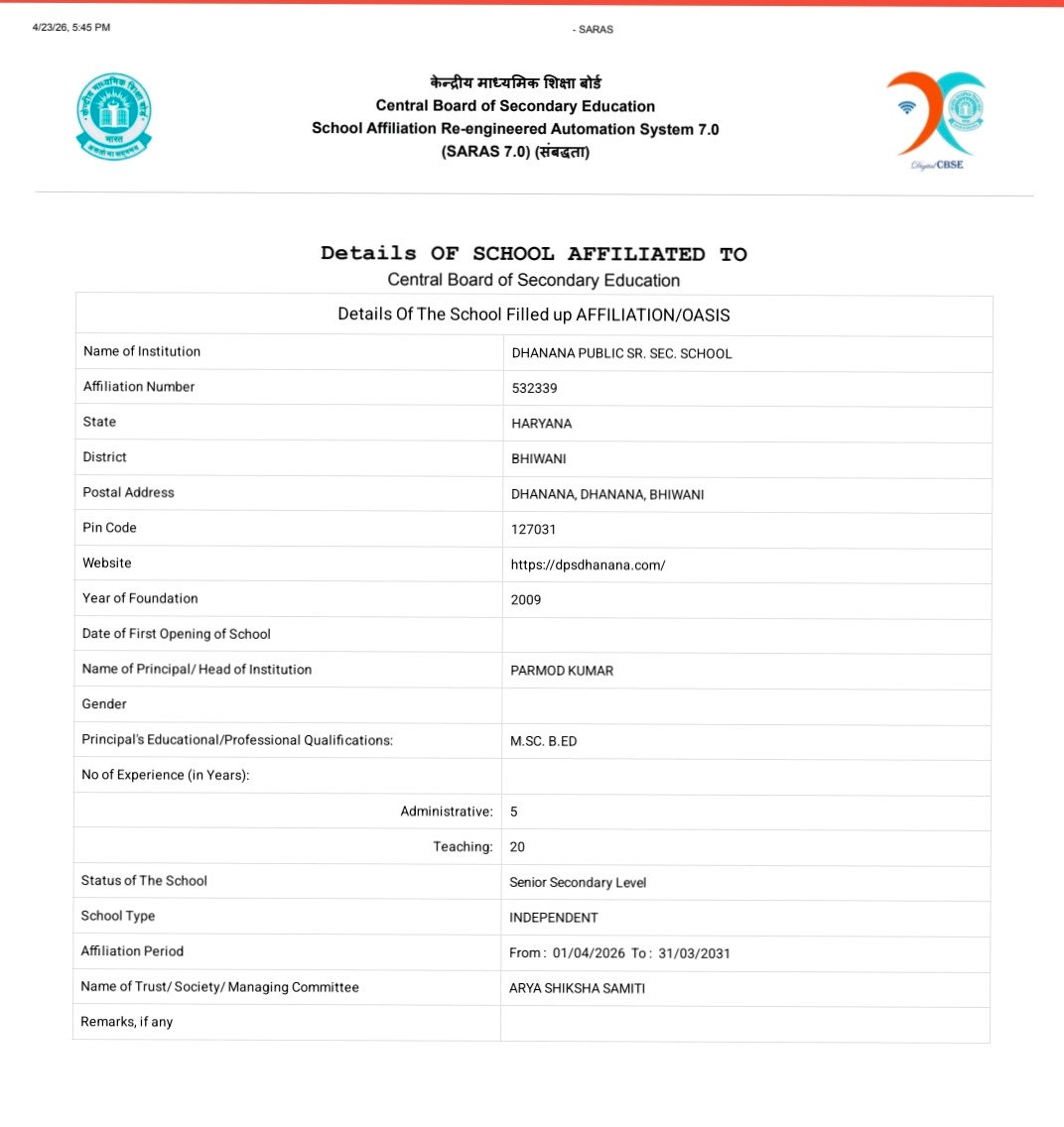 Grateful for the quality education and values instilled in my son at DPS School Dhanana Bhiwani. It's been a rewarding journey for our family.